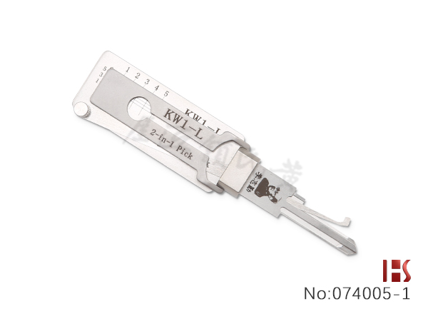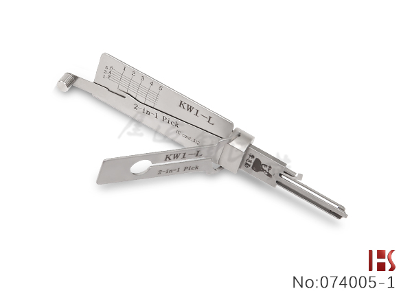 KW1 Lishi와 같은 도구이지만, 도어 프레임의 왼쪽에있는 잠금에 쉽게 액세스 할 수 있도록 만들어져 있습니다.